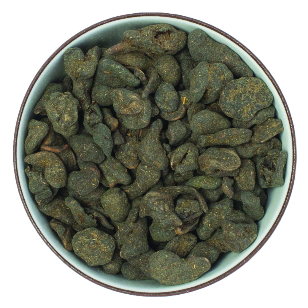 This tea is also known as Ginseng Wulong because the tea is processed with powdered American Ginseng root and licorice root powder and then rolled into tiny solid-looking pellets.